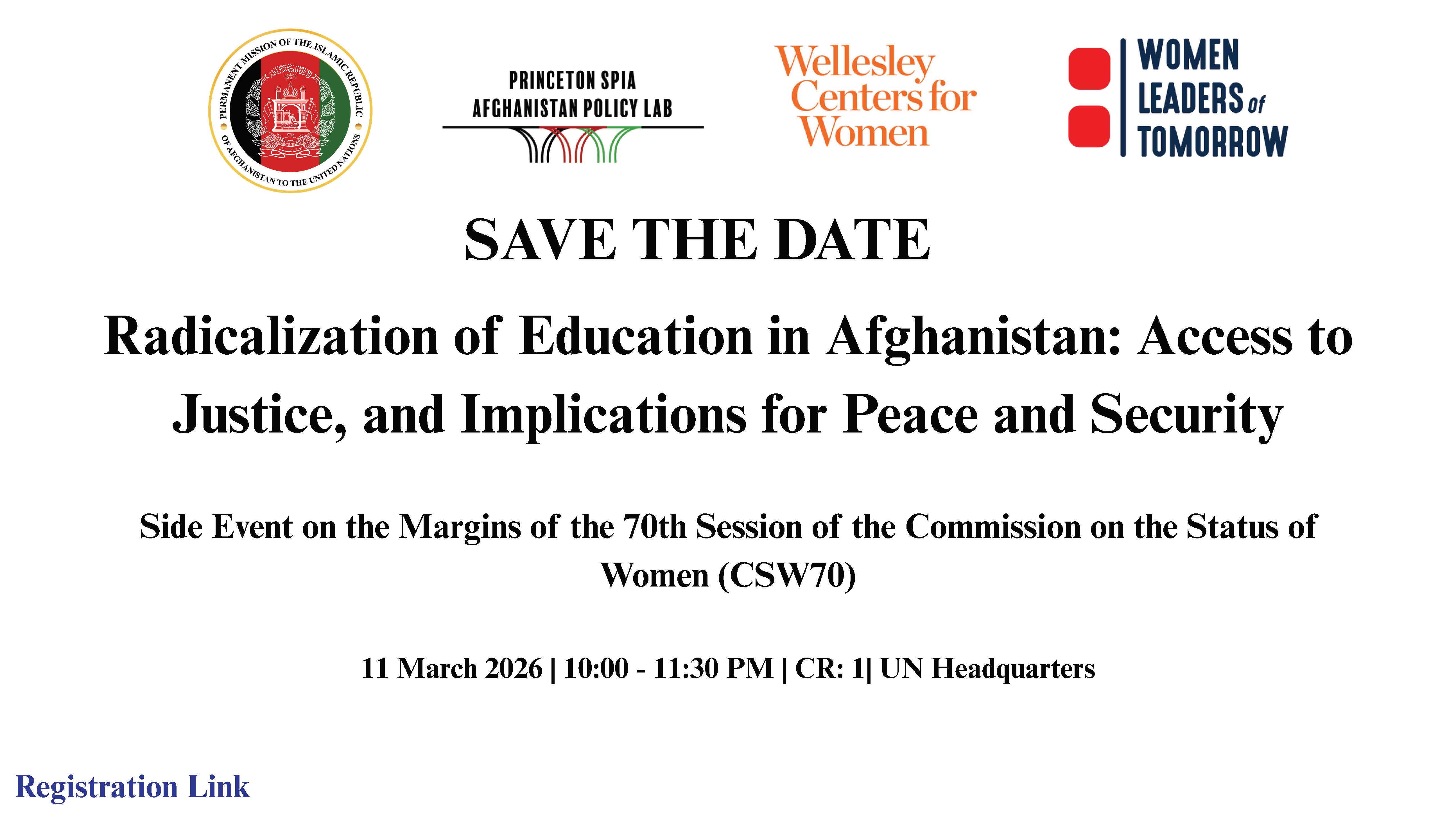 This side event will examine how the radicalization of education in Afghanistan constitutes a denial of access to justice, a violation of the Beijing Platform for Action, the 2030 Agenda, and the WPS framework, and a direct threat to long-term peace and security. It will also explore how ethical, gender-responsive online education and responsible integration of AI can serve as justice-enabling tools, supporting women's empowerment, economic resilience, and long-term inclusion in a technology-driven global economy.